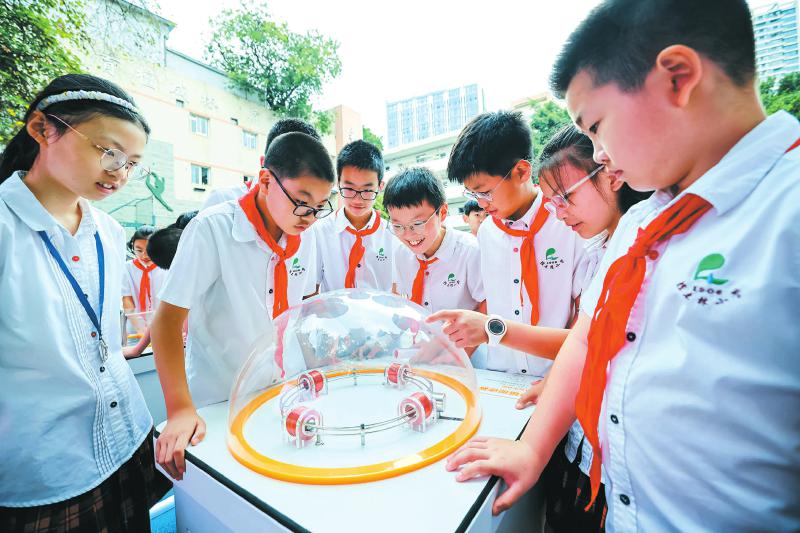 该校科技体验区成为最受学生追捧的打卡地。体验区内设置了“电磁加速器”“克拉尼图形”“频闪转盘”等15个科技产品互动展台。在“电磁加速器”前,同学们屏息观察金属环的悬浮奇迹;“克拉尼图形”展台用细沙演绎声波的美妙图案;“频闪转盘”则让学生直观理解视觉暂留原理。